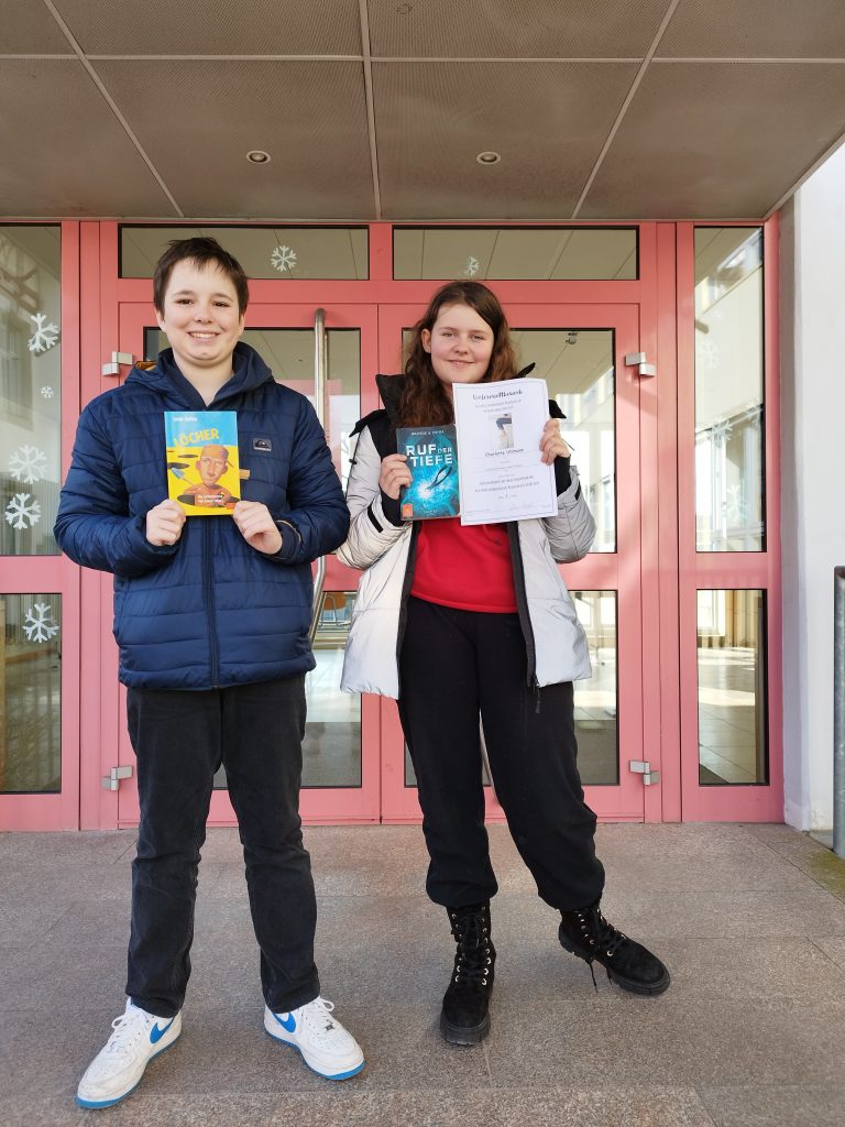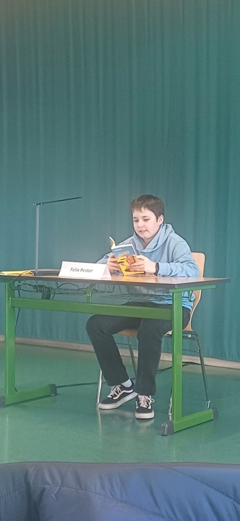Doch bekanntlich kommt das Beste zum Schluss. Charlotte begeisterte das Publikum mit einer Passage aus Ruf der Tiefevon Katja Brandis und Hans-Peter Ziemek, während Felix mit einem Abschnitt aus Löcher von Louis Sachar überzeugte. Beide beeindruckten die Jury mit ihrer ausdrucksstarken Lesetechnik und lebendigen Interpretation.