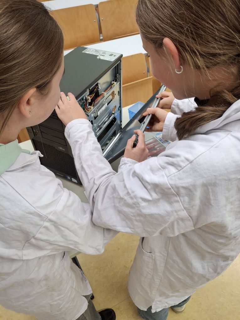 Am 18. November fand wieder unser Mädchen und Technik-Abend oder auch Mutter und Tochter-Abend genannt, statt. Fast alle Mädchen der 6. Jahrgangsstufen kamen in Begleitung ihrer Mamas in die naturwissenschaftlichen Räume, wo sie von Herrn Lüftl begrüßt wurden. Frau Seewald, Frau Schick, Herr Eigler sowie Herr Möhle und Frau Bachthaler bauten verschiedenste Stationen auf, an denen Schmuckstücke gelötet, PCs in ihre Bestandteile zerlegt oder Schokoküsse zum Explodieren gebracht wurden. An Bionik-Stationen wurde der Lotuseffekt verdeutlicht und in Chemie wurden verschiedene Feuerlöscher gebaut oder titriert. Mithilfe eines Akkuschraubers mit verschieden Bits mussten Holzkonstruktionen auseinander und wieder zusammengebaut sowie mit verschiedenen Drähten Werkstücke gebogen werden. Darüber hinaus faszinierte der Umgang mit einem Laser zur Steigungsmessung die weiblichen Teilnehmer.