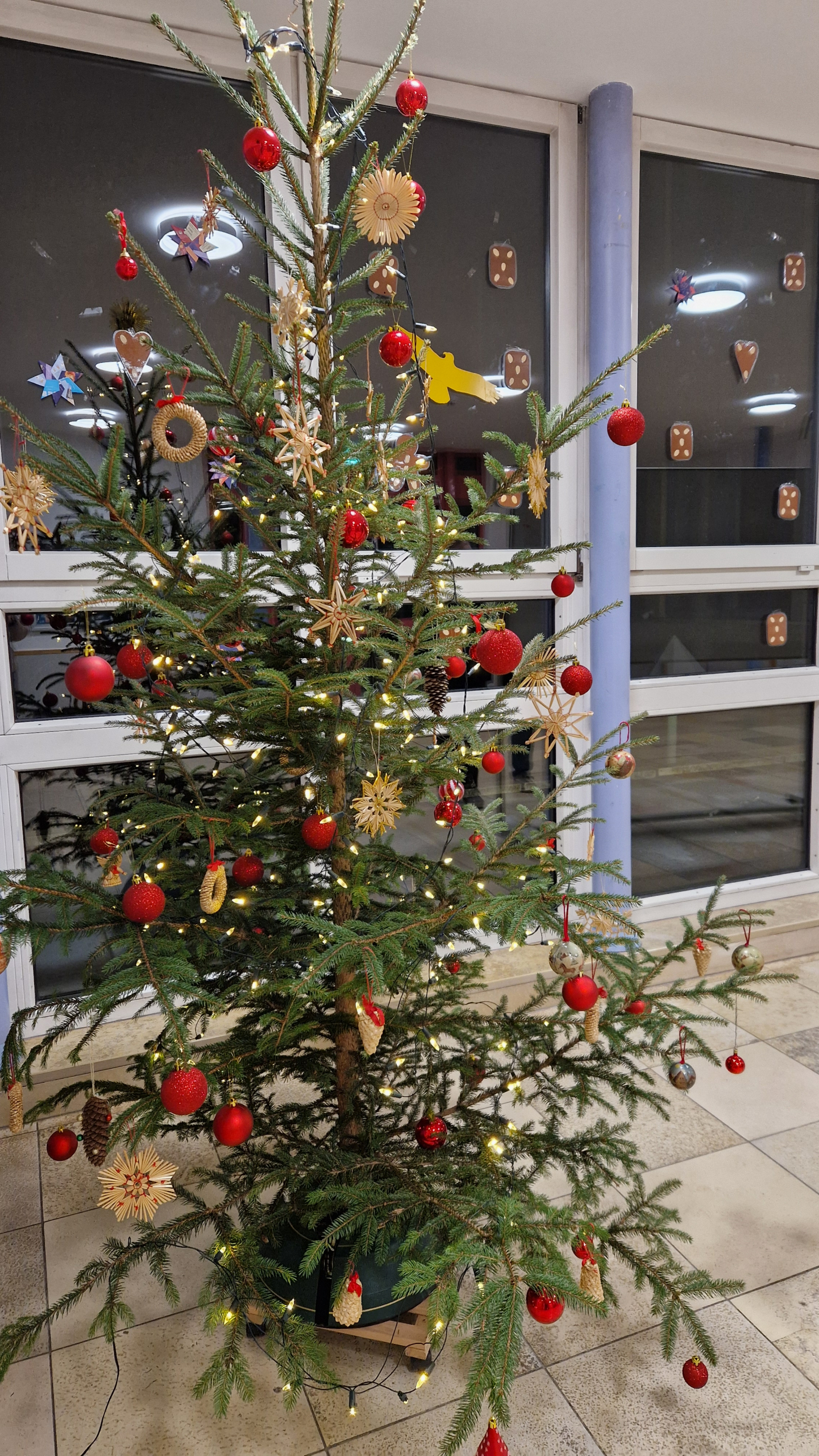Der Baum soll in der Adventszeit ein kleines Zeichen für Gemeinschaft, Zusammenhalt und vorweihnachtliche Stimmung sein – etwas, das uns alle in der Schule verbindet.