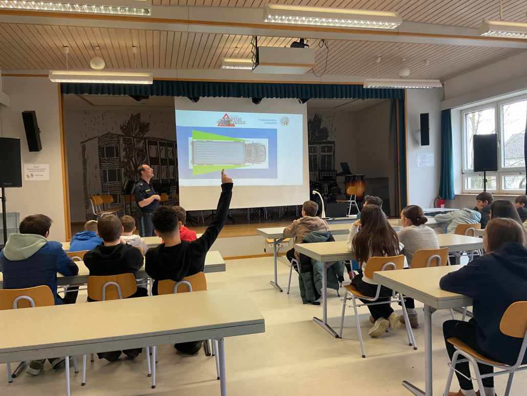 Im Februar wurde unsere Schule von Polizeioberkommissar Pause besucht. Er klärte die Schülerinnen und Schüler der sechsten Klassen über wichtige Verkehrsregeln auf und erklärte, wie man sich sicher im Straßenverkehr verhält.