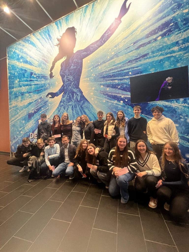 Am Dienstag, den 11.3.2025 machten sich 57 Schüler*innen und Lehrer*innen nach dem Unterricht auf den Weg nach Stuttgart, um sich das dort relativ neu installierte Musical „Die Eiskönigin“ anzusehen. Vor Beginn der Vorstellung blieb den Teilnehmenden sogar noch etwas Zeit, um sich im Musicalhaus umzusehen.