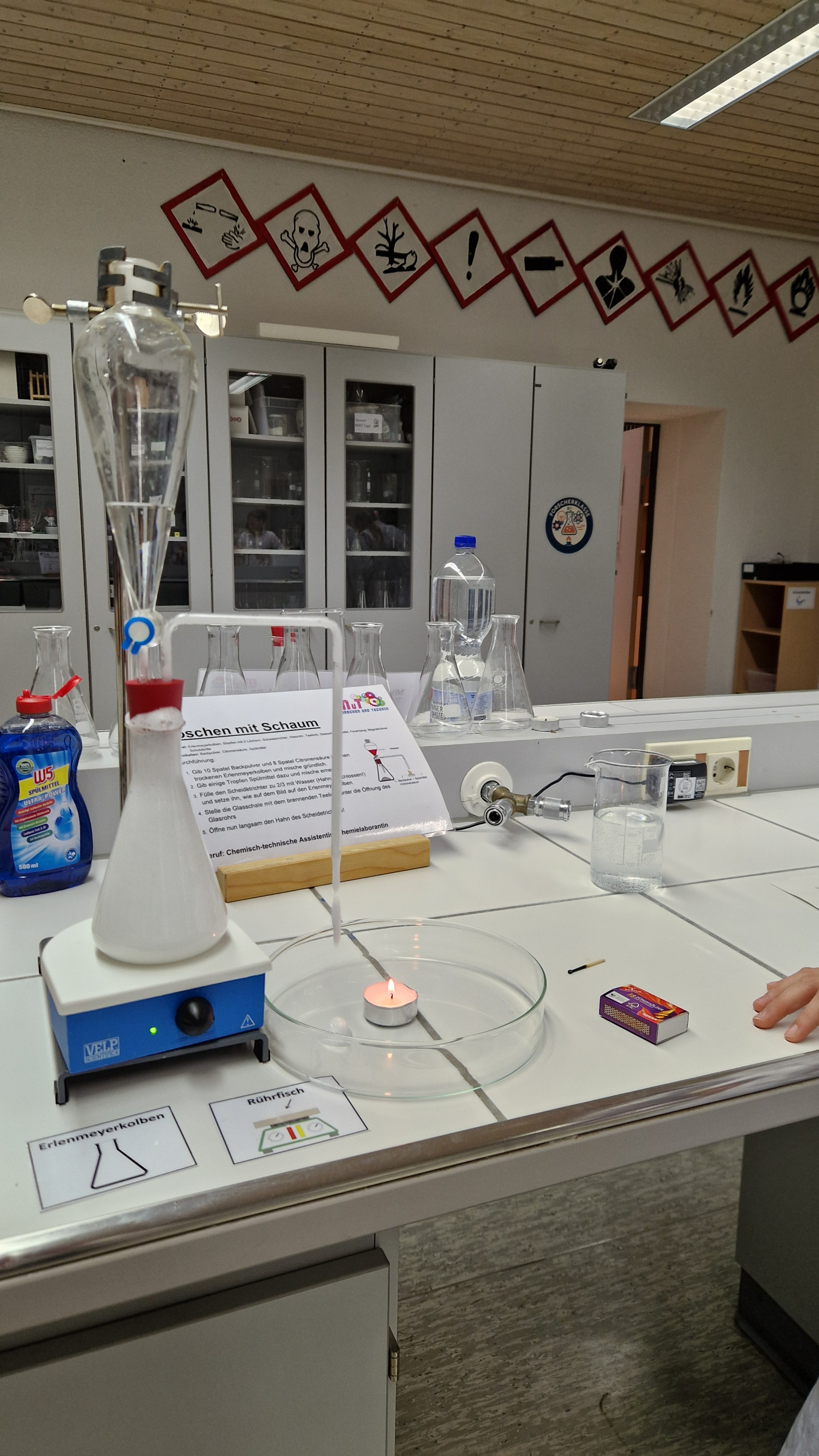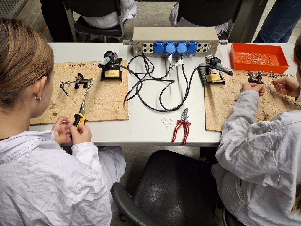 Am 18. November fand wieder unser Mädchen und Technik-Abend oder auch Mutter und Tochter-Abend genannt, statt. Fast alle Mädchen der 6. Jahrgangsstufen kamen in Begleitung ihrer Mamas in die naturwissenschaftlichen Räume, wo sie von Herrn Lüftl begrüßt wurden. Frau Seewald, Frau Schick, Herr Eigler sowie Herr Möhle und Frau Bachthaler bauten verschiedenste Stationen auf, an denen Schmuckstücke gelötet, PCs in ihre Bestandteile zerlegt oder Schokoküsse zum Explodieren gebracht wurden. An Bionik-Stationen wurde der Lotuseffekt verdeutlicht und in Chemie wurden verschiedene Feuerlöscher gebaut oder titriert. Mithilfe eines Akkuschraubers mit verschieden Bits mussten Holzkonstruktionen auseinander und wieder zusammengebaut sowie mit verschiedenen Drähten Werkstücke gebogen werden. Darüber hinaus faszinierte der Umgang mit einem Laser zur Steigungsmessung die weiblichen Teilnehmer.